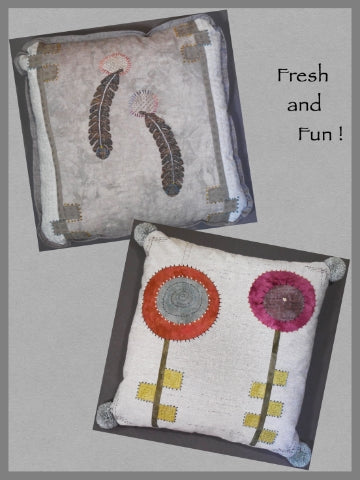 These pillows are pieced and then appliquéd using a very easy starch and press method. The Feather Pillow pieced background has been quilted before appliquéing. This is optional.