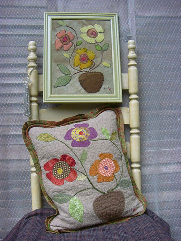 Make a simple 10" x 13" framed or cloth wall hanging...ours is shown in wool. Or stitch up the larger quilted pillow version that we've done up in various fabrics. Instructions for our "krinkle quilting" method included.