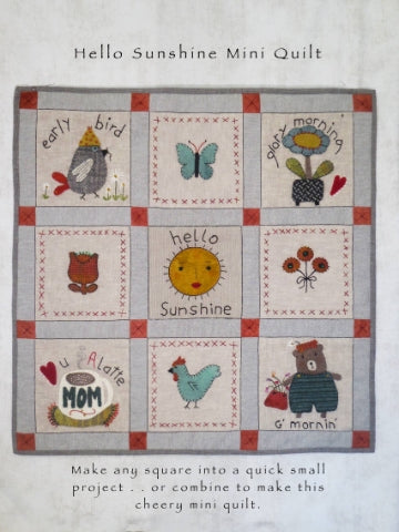 Simple fusible wool applique on flax colored linen blend. Nine 5.5 inch blocks make up this sweet little morning mini quilt. Approximately 20"