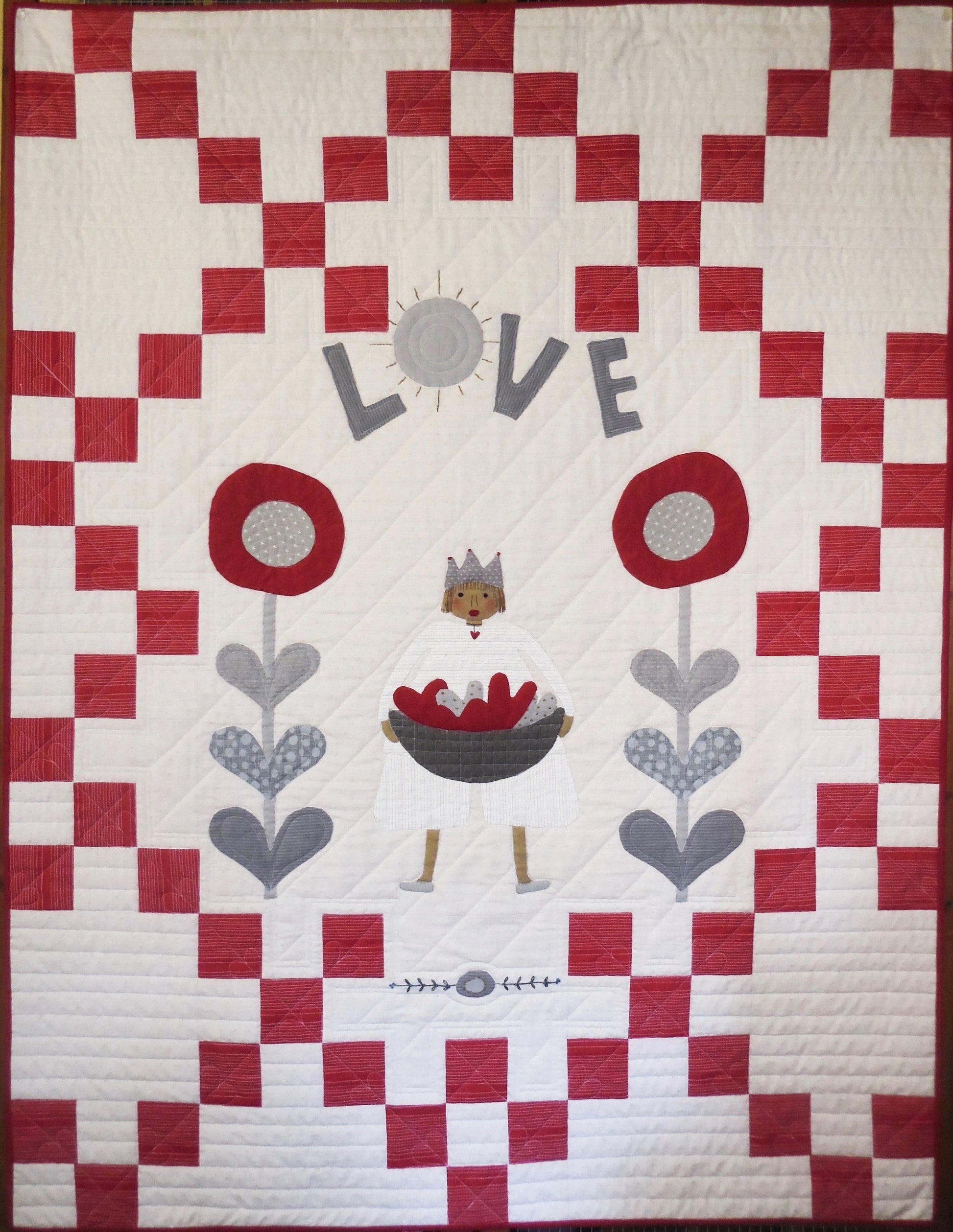 - Queen Of Hearts Quilt Kit PLUS Pattern at discounted price. Includes: Background and applique fabrics for entire quilt front PLUS enough Red for narrow Binding. PLEASE NOTE: Stitched Red fabric seen in blocks is no longer available. Solid Red seen in applique pieces Is the Red provided for Applique AND Blocks.